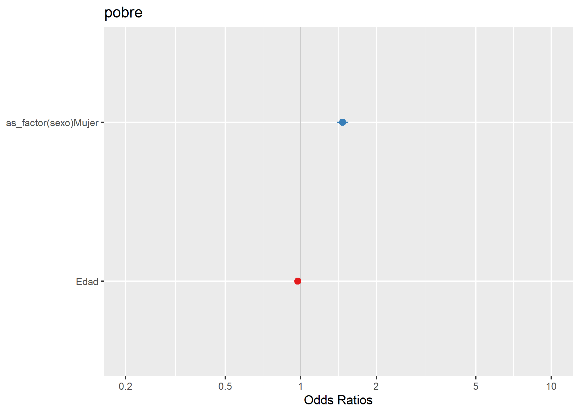 - Para hombres: $$ \text{Odds}_{\text{hombre}} = \frac{\text{Casos en pobreza (hombre)}}{\text{Casos no en pobreza (hombre)}} $$