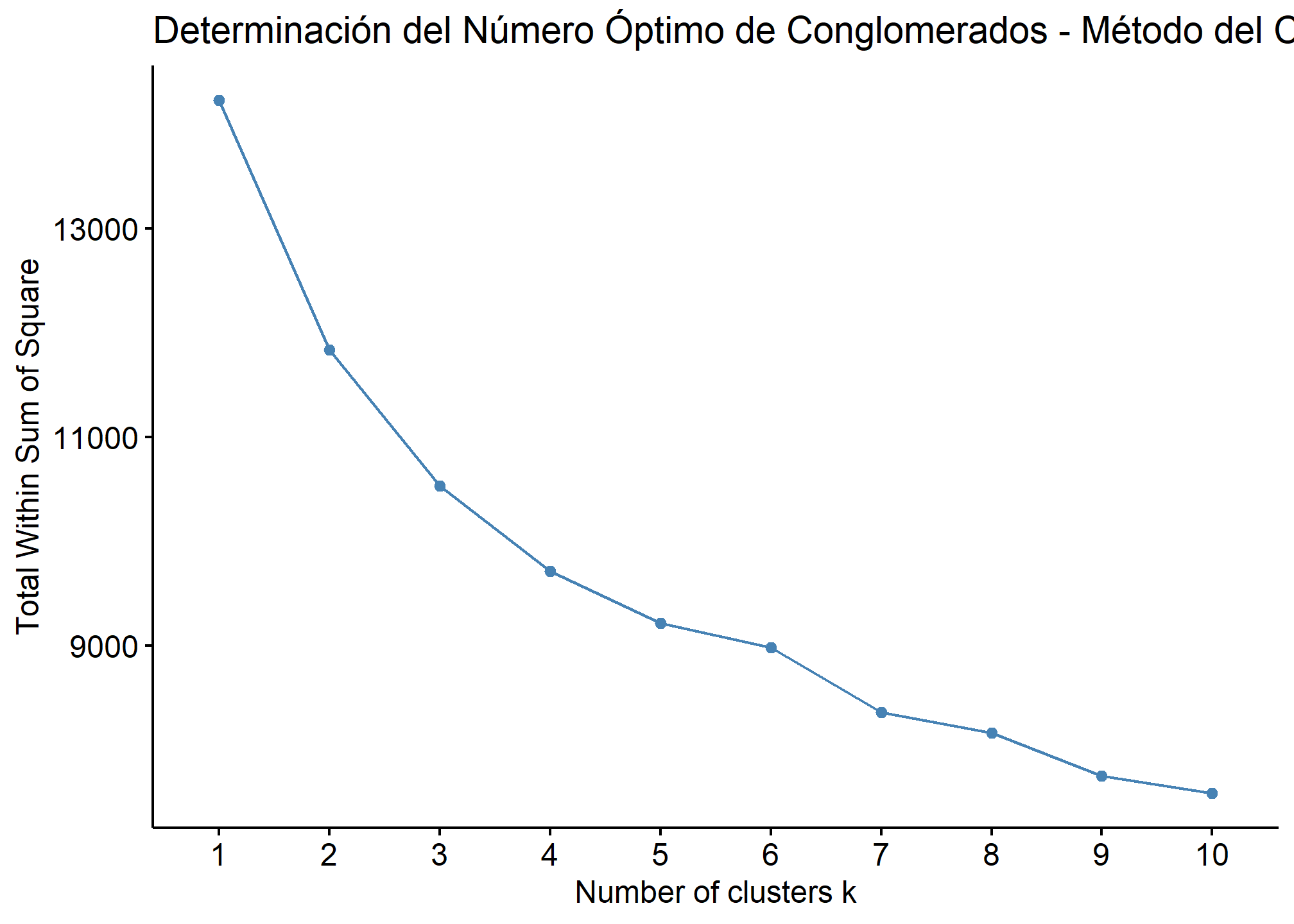 labs(title = "Determinación del Número Óptimo de Conglomerados - Método del Codo")