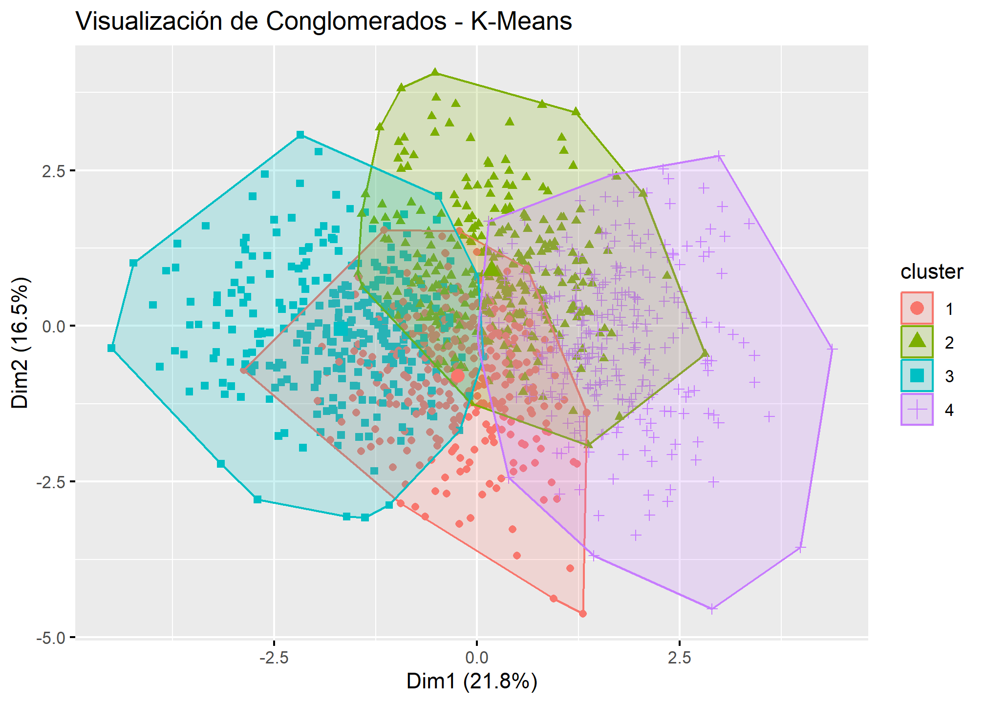 fviz_cluster(kmeans_result, data = elsoc_vars, geom = "point", main = "Visualización de Conglomerados - K-Means")