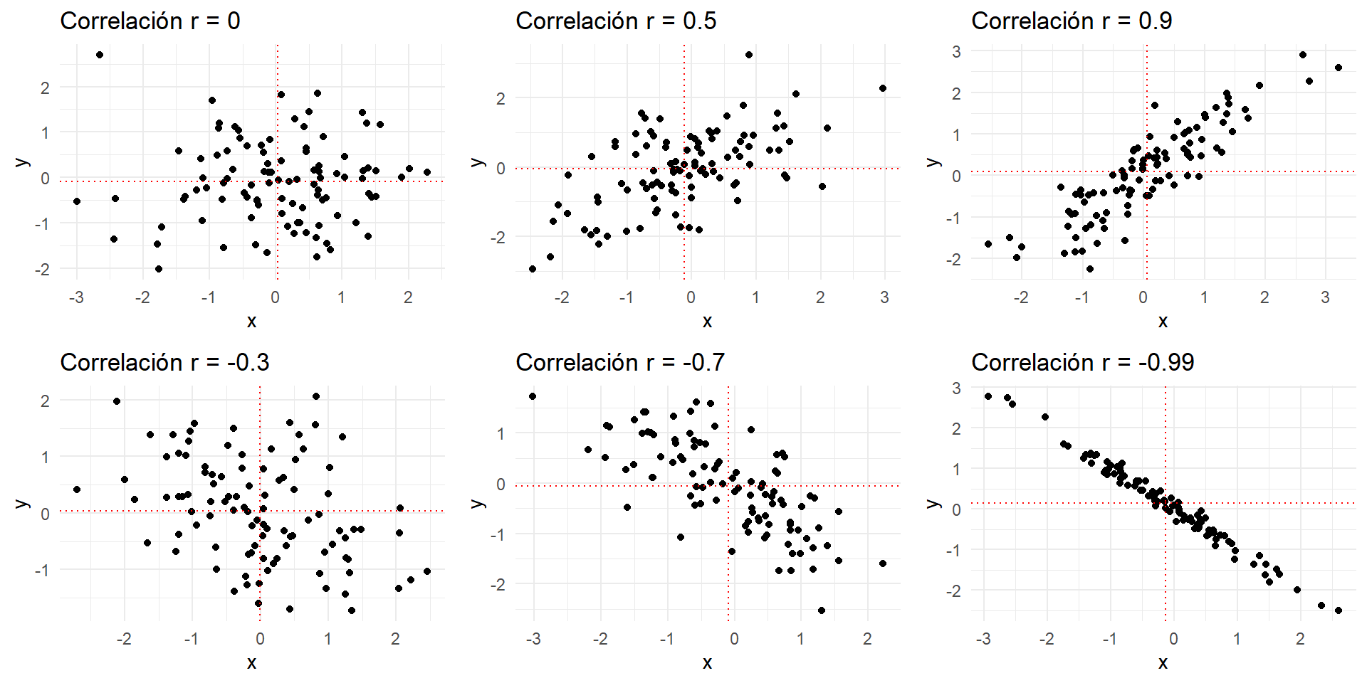 Ojo: si bien lo términos pueden sugerir causalidad esto no necesariamente es así (en la mayoría de los casos no lo es).