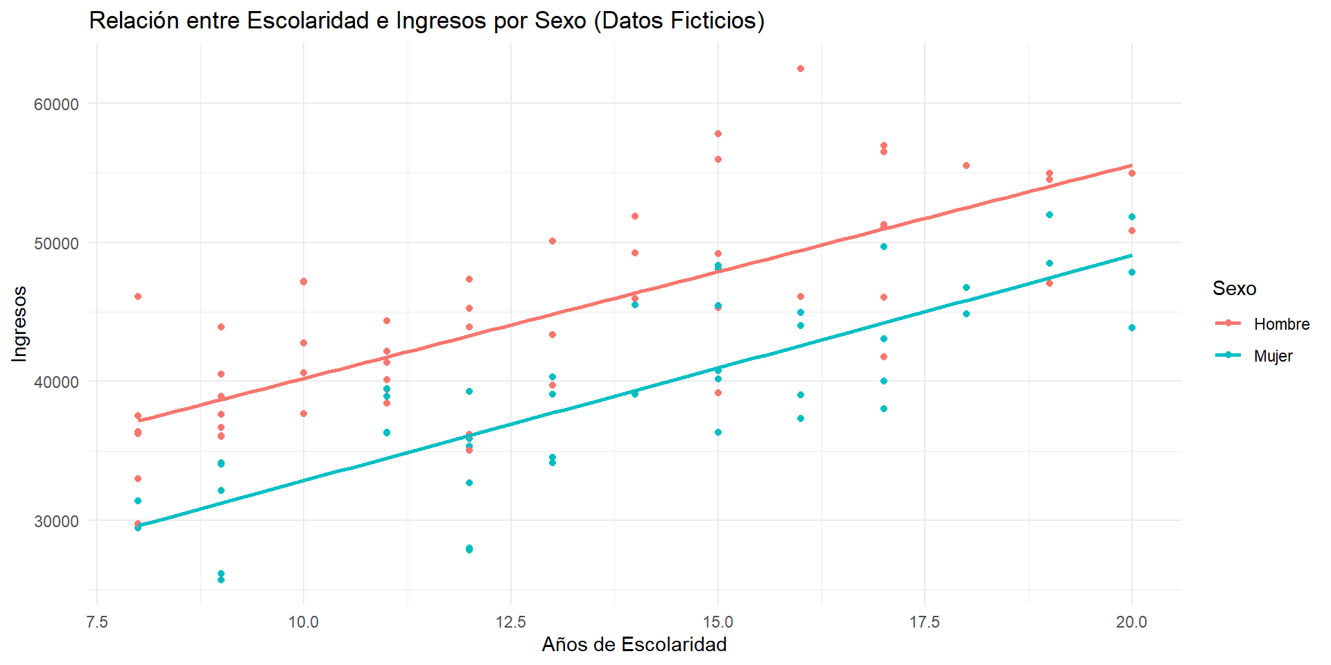 Ejemplo de sexo e ingresos del trabajo (datos simulados)